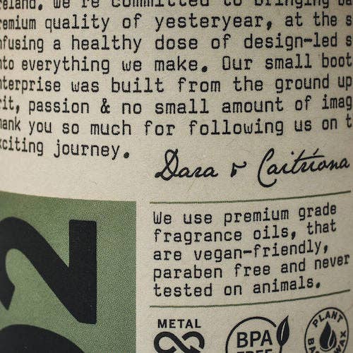 Notes: Bergamot, grapefruit, musk, woods Family: Woody / Oriental Available as: Candle, Wax Melts 100% natural coconut & soy wax. There are hand poured on the west coast of Ireland in small batches, using premium grade fragrance oils, that are vegan-friendly, paraben-free, and never tested on
