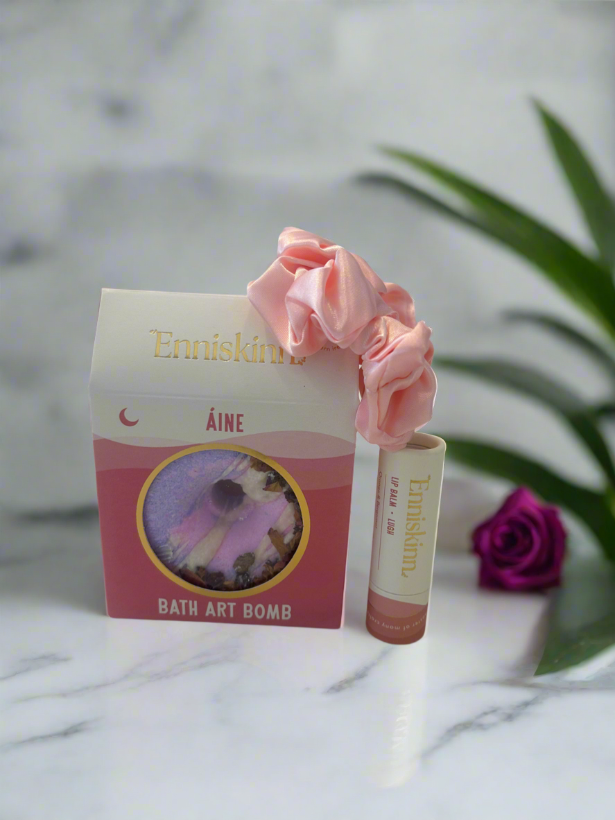 Relax and unwind with our And Relax.. collection. This package includes luxury products such as Enniskinn Bath Bomb, Lip Balm and a Silk/Satin Scrunchie. Treat yourself to a calming experience and soothe your mind, body, and soul.