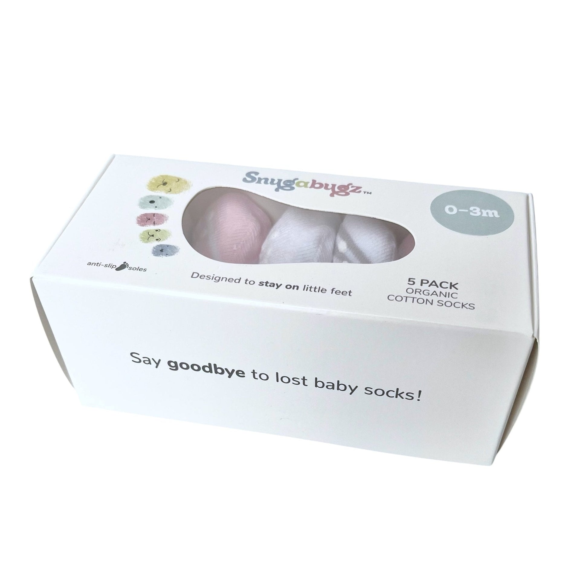 Snugabugz | Pink Baby Socks That Stay On With Non-Slip Soles - 5 Pack Gift Box